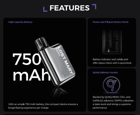 Compatible with Lost Mary Tappo Prefilled Kits.
