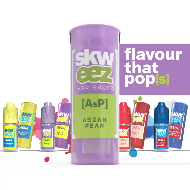 SKWEEZ 10ml 10MG & 20MG nicotine salts, available in 30 mouth-watering fusion-flavours that pop!