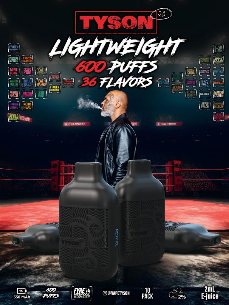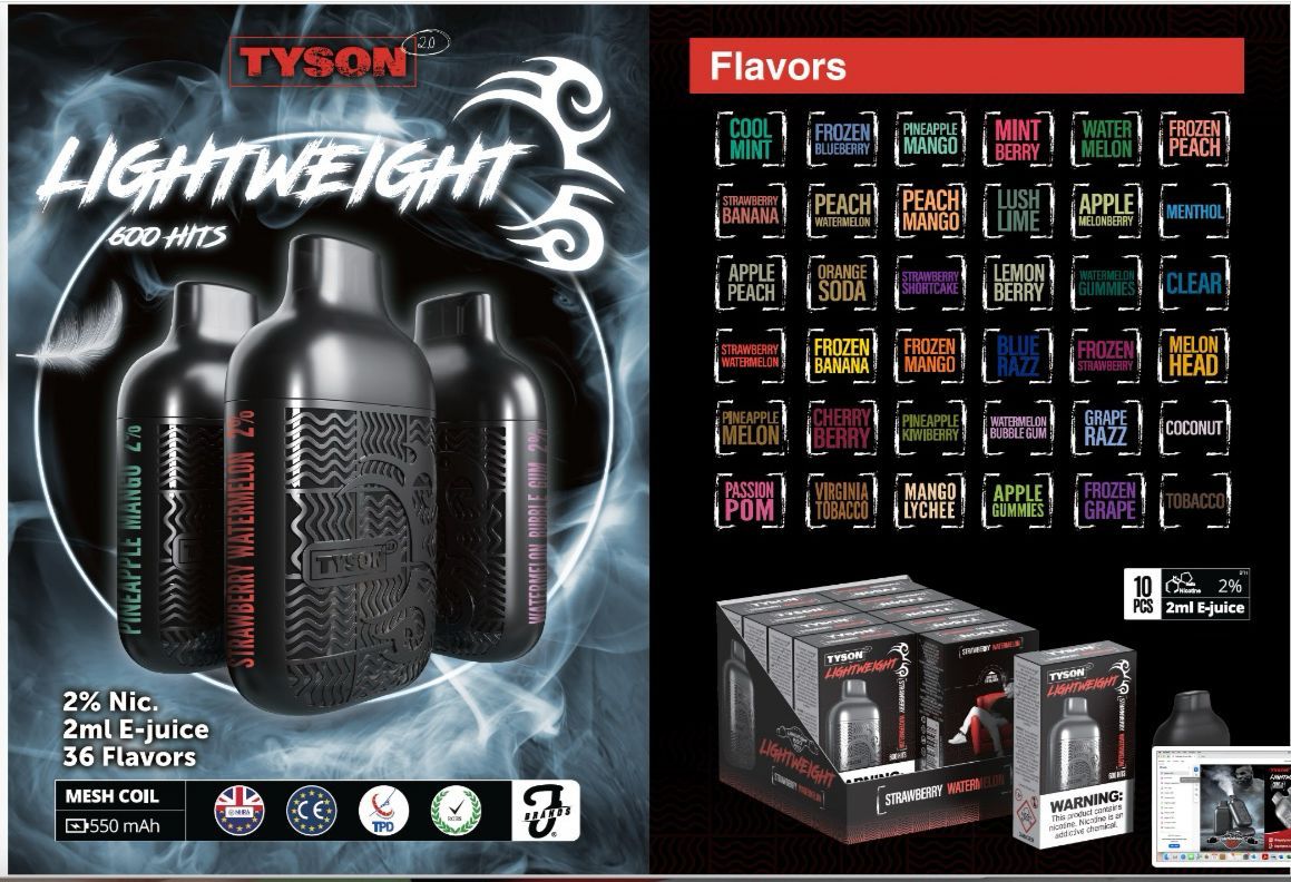 TYSON 2.0 Lightweight Disposable Vapes 1X10 pack